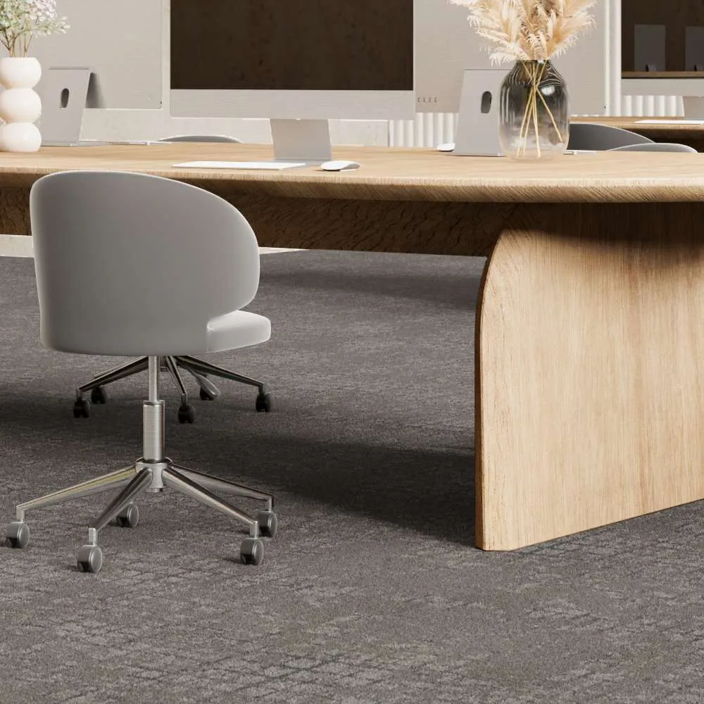 Коллекция Macro - ковровая плитка с индивидуальным дизайном, где основа нейтральный однотонный цвет и декоративный узор, который напоминает потертости. Используются контрастные штрихи, чтобы подчеркнуть неповторимый характер.