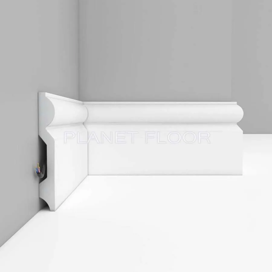 Напольный плинтус Decomaster — современное решение для завершения интерьера. Придаёт помещению солидный вид, а белый цвет и поверхность под покраску позволяют подобрать любой оттенок под стиль интерьера.