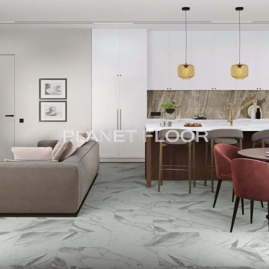Усовершенствованная кварц-виниловая LVT-плитка из коллекции Ascent — идеальное решение для сдержанных, монохромных интерьеров. Её дизайн с точностью воспроизводит цвет и рельеф натурального камня, придавая помещению благородство и современную строгость.