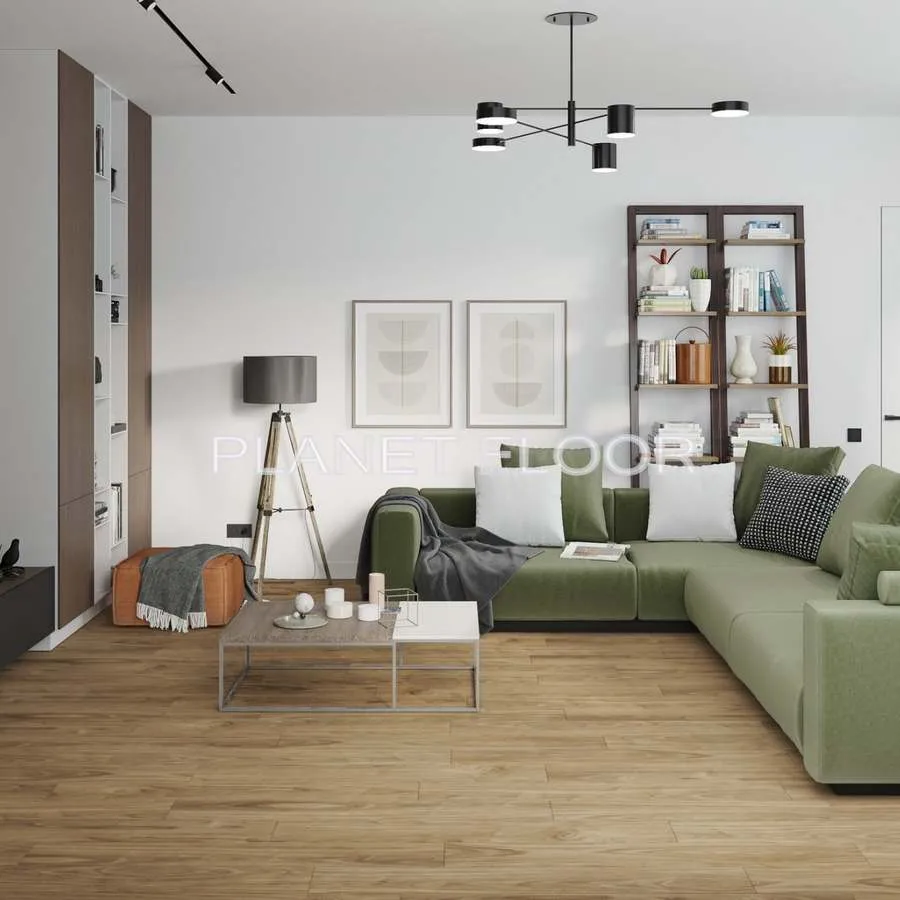 Дизайн плитки с точностью передаёт цвет, рисунок и рельеф натурального дуба, создавая ощущение настоящего деревянного пола. Но в отличие от него — не боится влаги, не деформируется и не требует сложного ухода.