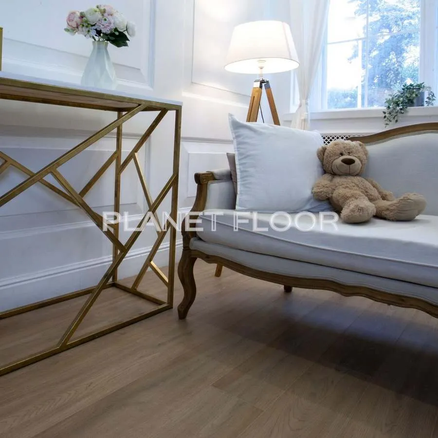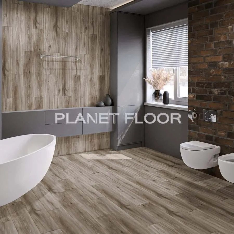 Дизайн плитки с точностью передаёт цвет, рисунок и рельеф натурального дуба, создавая ощущение настоящего деревянного пола. Но в отличие от него — не боится влаги, не деформируется и не требует сложного ухода.