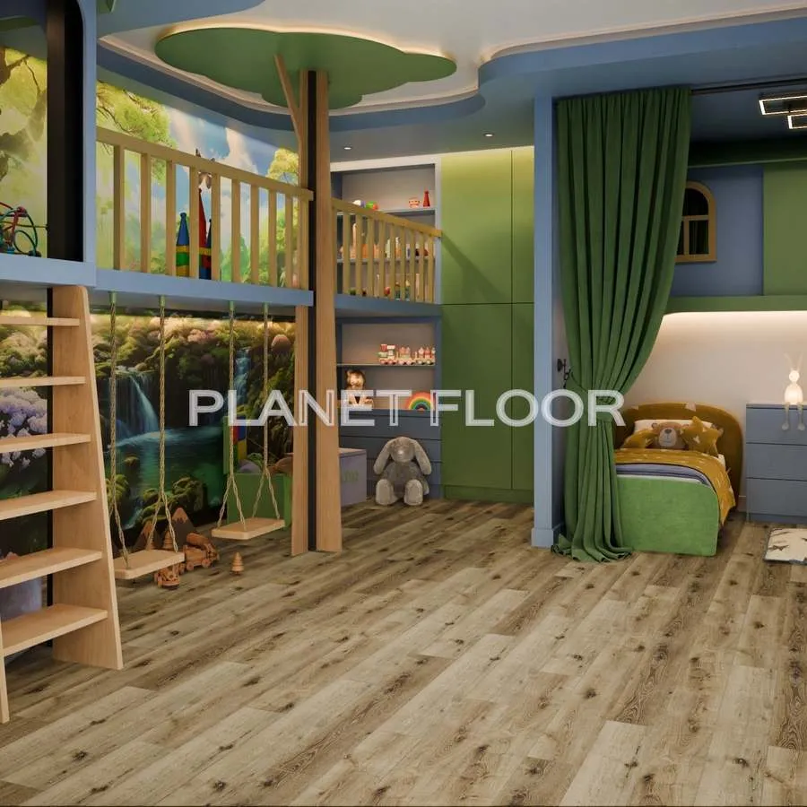 Дизайн плитки с точностью передаёт цвет, рисунок и рельеф натурального дуба, создавая ощущение настоящего деревянного пола. Но в отличие от него — не боится влаги, не деформируется и не требует сложного ухода.