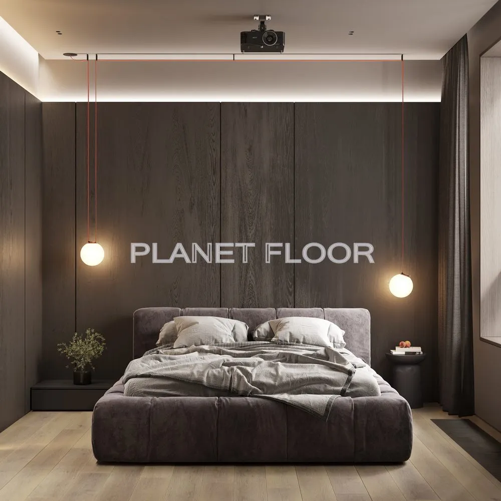 Брашированная текстура придает полу тактильную и визуальную привлекательность, имитируя структуру натурального дерева. - Тиснение: в регистр